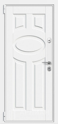 Стальная дверь белого цвета с панелью МДФ и молдингом №96
