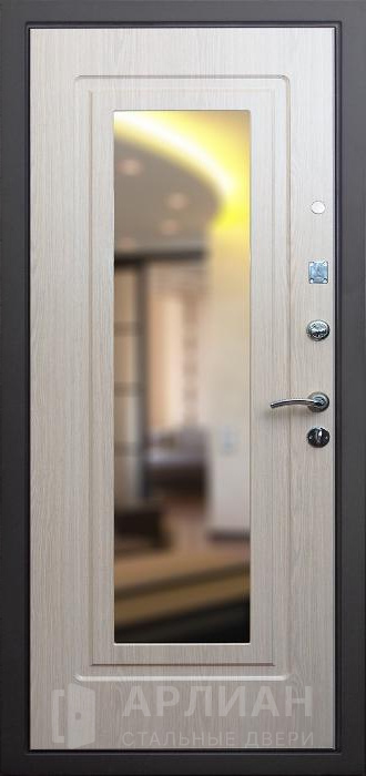 Дверь входная металлическая с уплотнителем муар и зеркалом капучино №75
