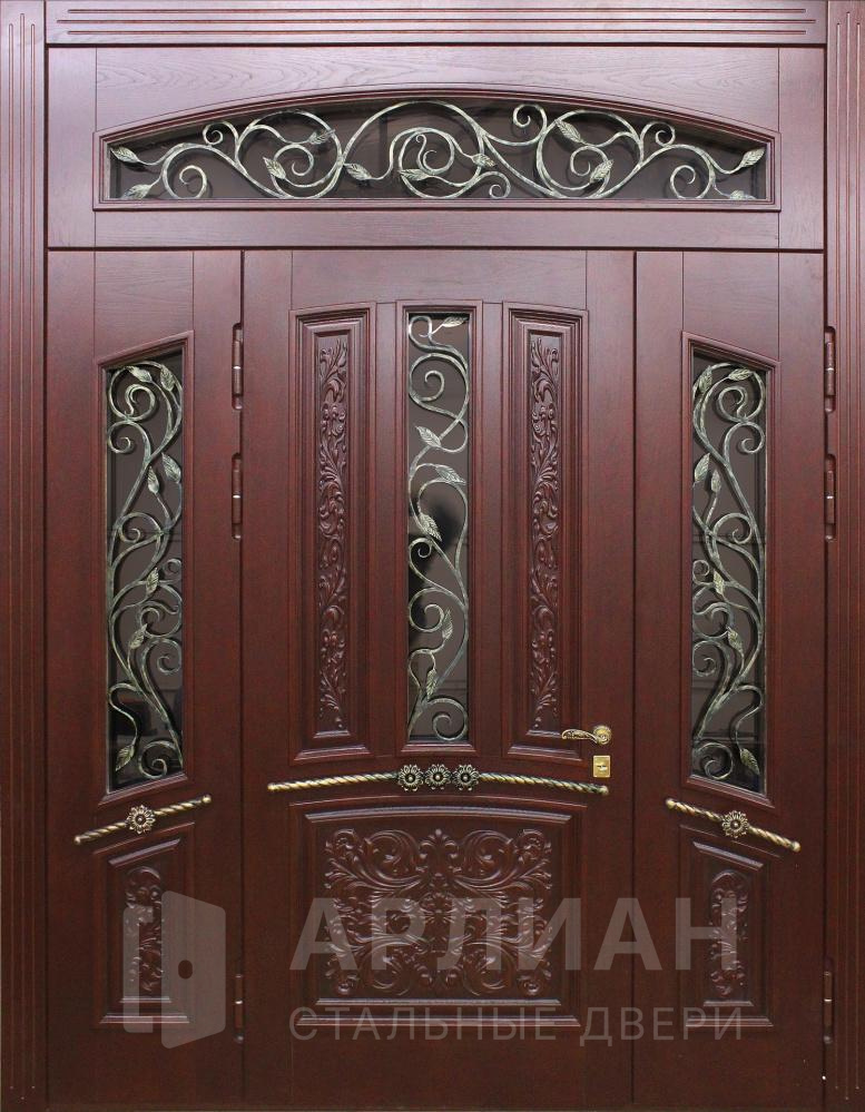 Входная дверь для загородного дома с коваными элементами №115