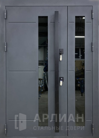 Двухстворчатая входная дверь со стеклом и ковкой №9
